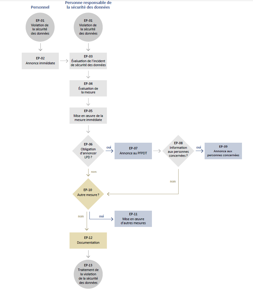 Voir le point 4 : liste de contrôle et déroulement de la procédure en cas de violation de la protection des données
